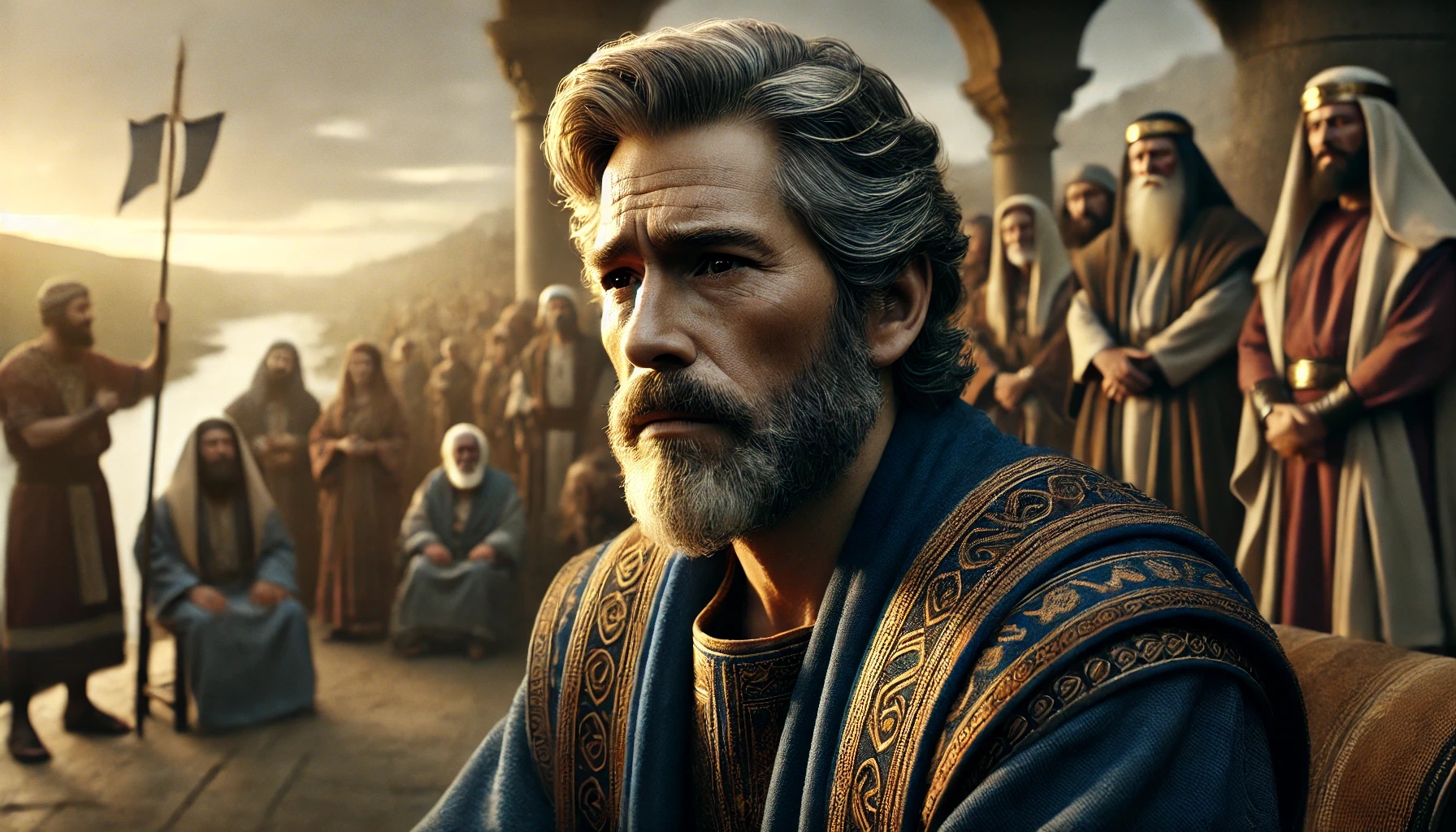 Joab tritt mutig vor David. Seine Worte sind hart, aber notwendig. Er hält dem König einen Spiegel vor: Wenn David jetzt nicht handelt, wird er das Volk verlieren, das ihn gerettet hat. David muss aufstehen – nicht weil sein Schmerz endet, sondern weil seine Verantwortung ruft. Und so setzt er sich ins Tor, den Platz des Königs. Als das Volk ihn dort sieht, kehrt Ordnung zurück.