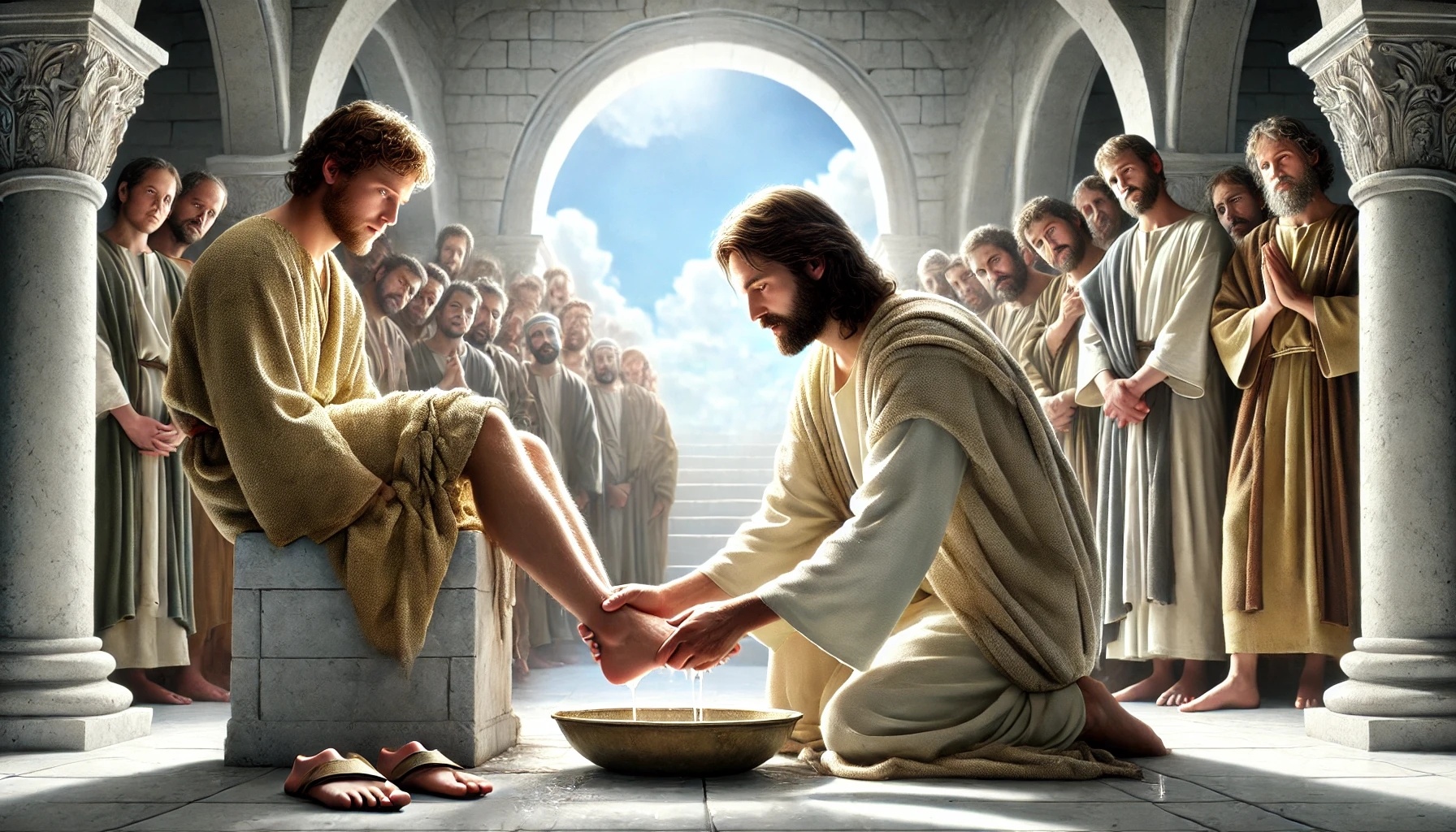 Jesus antwortet, indem er ein völlig anderes Prinzip einführt. In seinem Reich ist der Größte derjenige, der dient. Er stellt sich selbst als Beispiel vor und zeigt damit, dass wahre Größe nicht durch Position, sondern durch Haltung definiert wird.