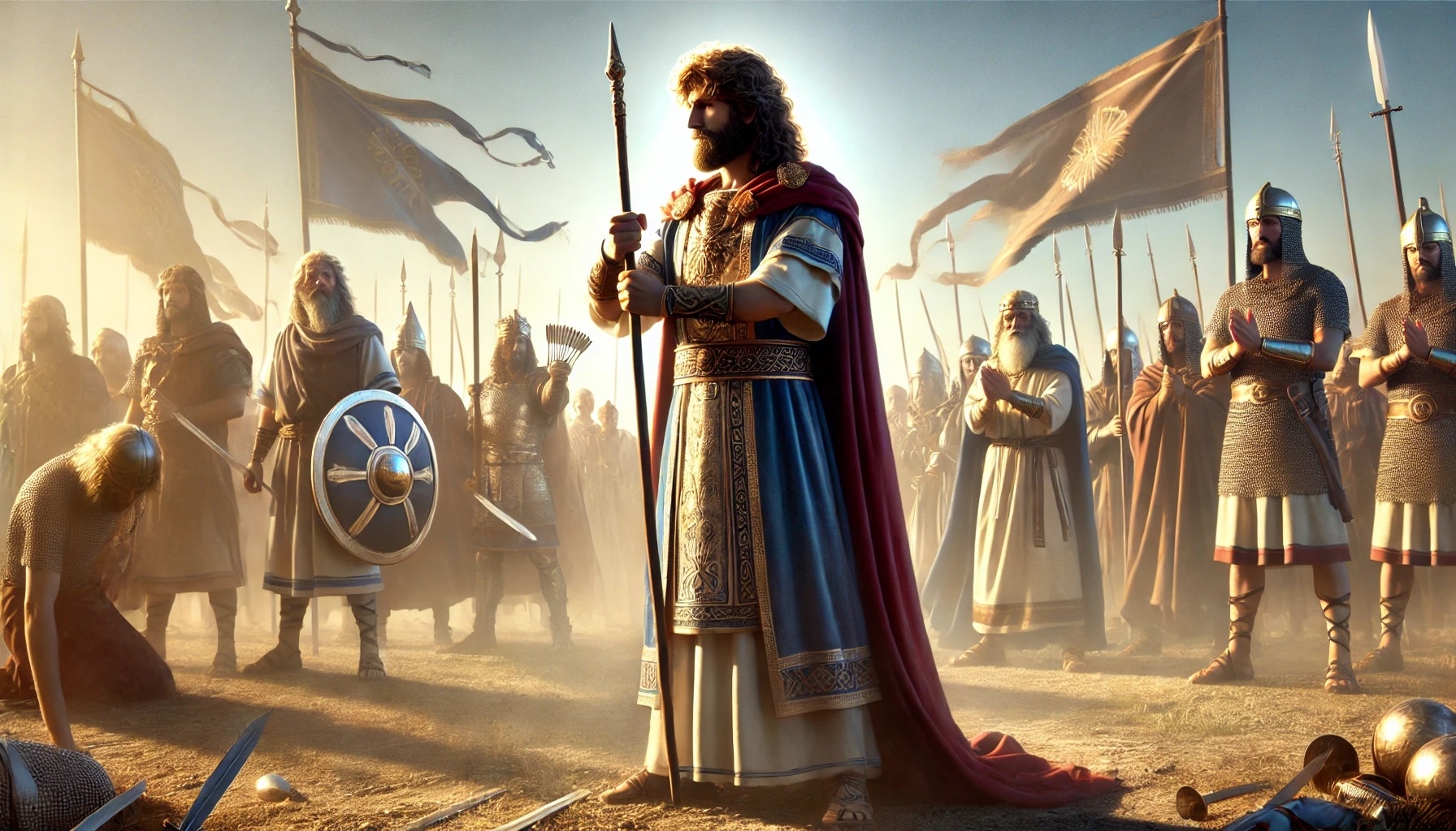 Die Szene wechselt zu den Schlachtfeldern. David zieht aus, nicht aus Ehrgeiz, sondern als König, der sein Reich festigt. Ein Gegner nach dem anderen tritt ihm entgegen – die Philister, die Moabiter, die Aramäer.