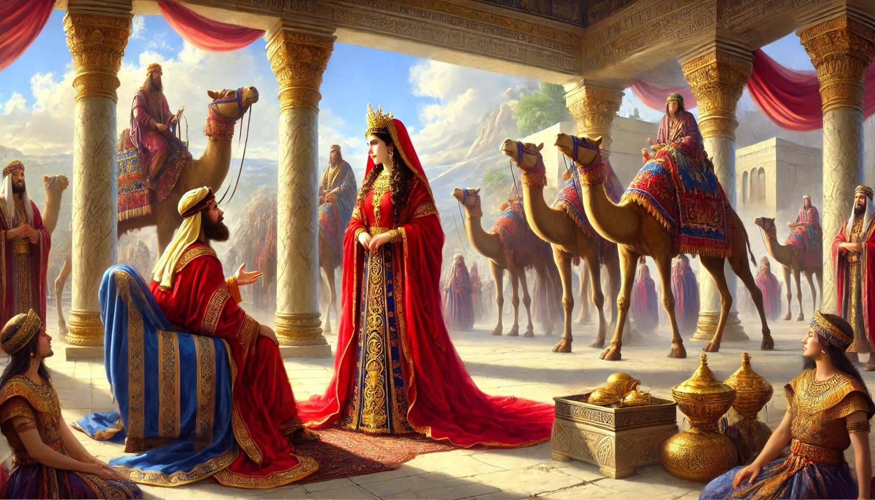 Die Kรถnigin von Saba besucht Salomo und ist tief beeindruckt von seiner Weisheit und seinem Reich.