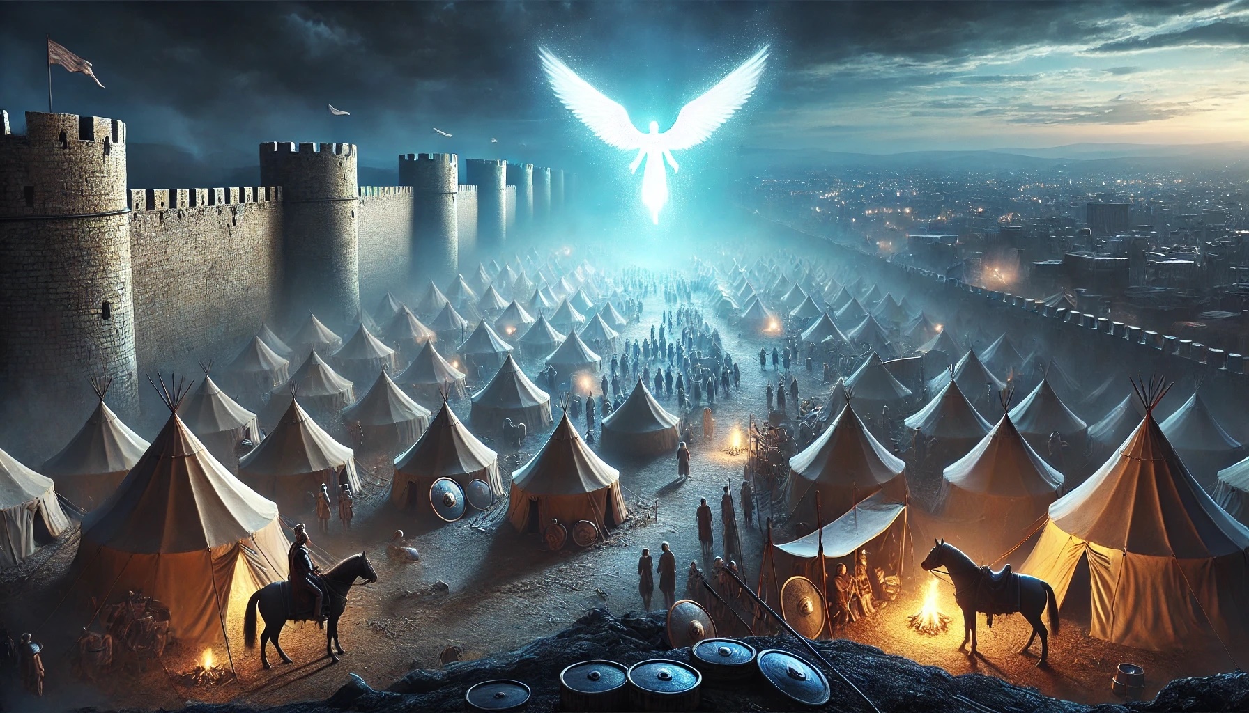 In der Nacht geschieht das Unerwartete: Ein Engel des Herrn schlägt das assyrische Lager, sodass ein Großteil des Heeres stirbt. Am Morgen stehen die Überlebenden vor einer unbegreiflichen Realität. Sanherib zieht sich zurück und kehrt nach Ninive heim. Später wird er dort von eigenen Söhnen getötet – genau wie angekündigt.