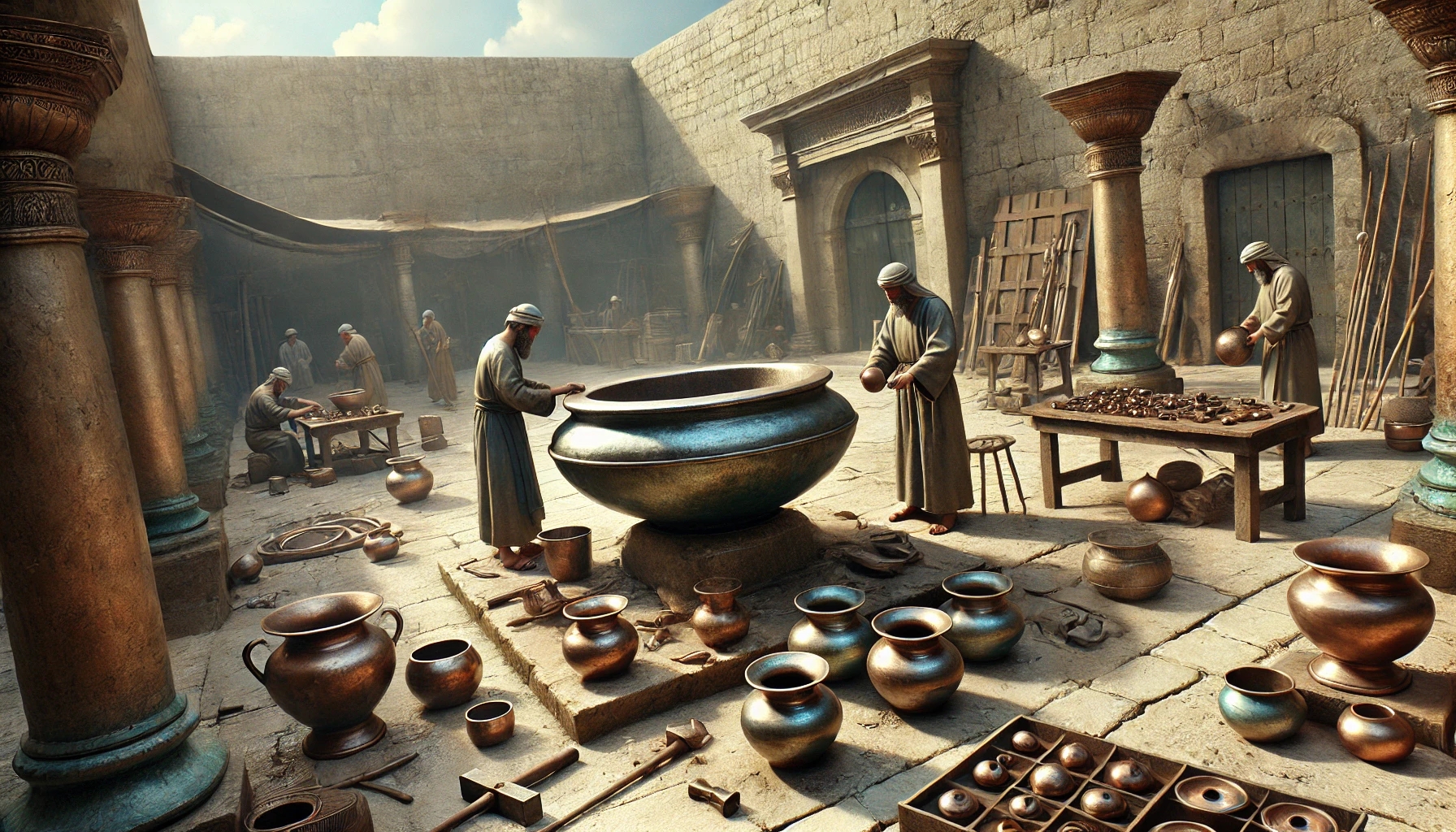 Der Tempel steht – doch er ist noch nicht vollständig. Jetzt geht es darum, ihn mit Leben zu füllen. Geräte, Altäre, Becken, Leuchter – alles wird hergestellt und an seinen Platz gebracht.