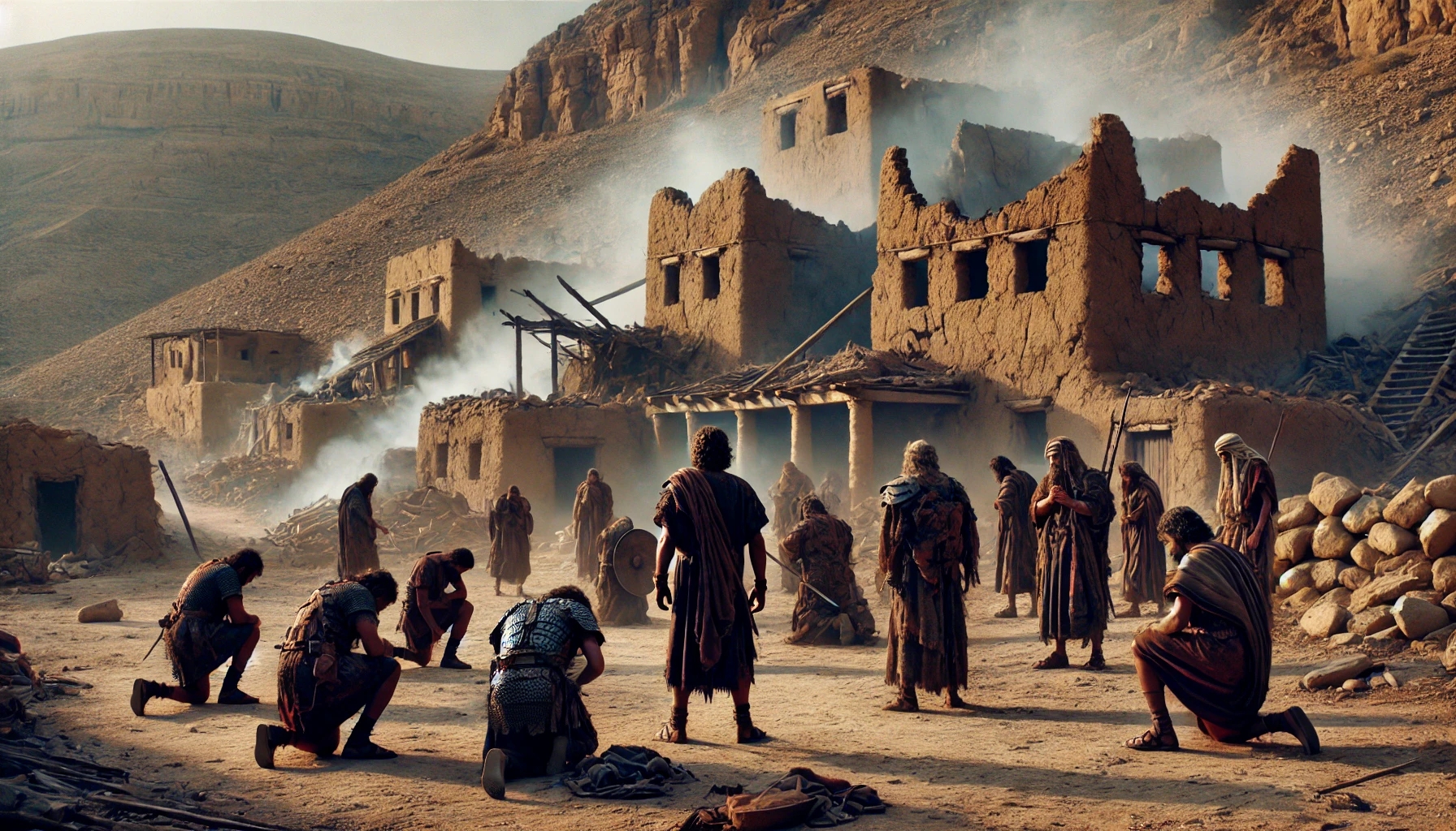 David kommt mit seinen Männern nach Ziklag zurück. Drei Tage sind sie unterwegs gewesen – müde, angespannt, voller Ungewissheit. Doch was sie sehen, raubt ihnen den Atem: Die Stadt ist verbrannt. Kein Leben. Keine Stimmen. Keine Kinder. Keine Frauen. Nur Rauch, Asche und Stille.