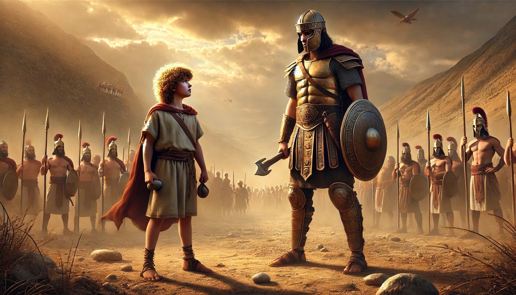 Die Philister und Israel stehen sich gegenüber. Zwei Heere, getrennt durch ein Tal. Tag für Tag tritt Goliath hervor – ein erfahrener Krieger, riesig, schwer bewaffnet, selbstbewusst. Seine Stimme hallt über das Tal, seine Worte sind voller Spott und Verachtung. Vierzig Tage lang verhöhnt er Israel und seinen Gott.