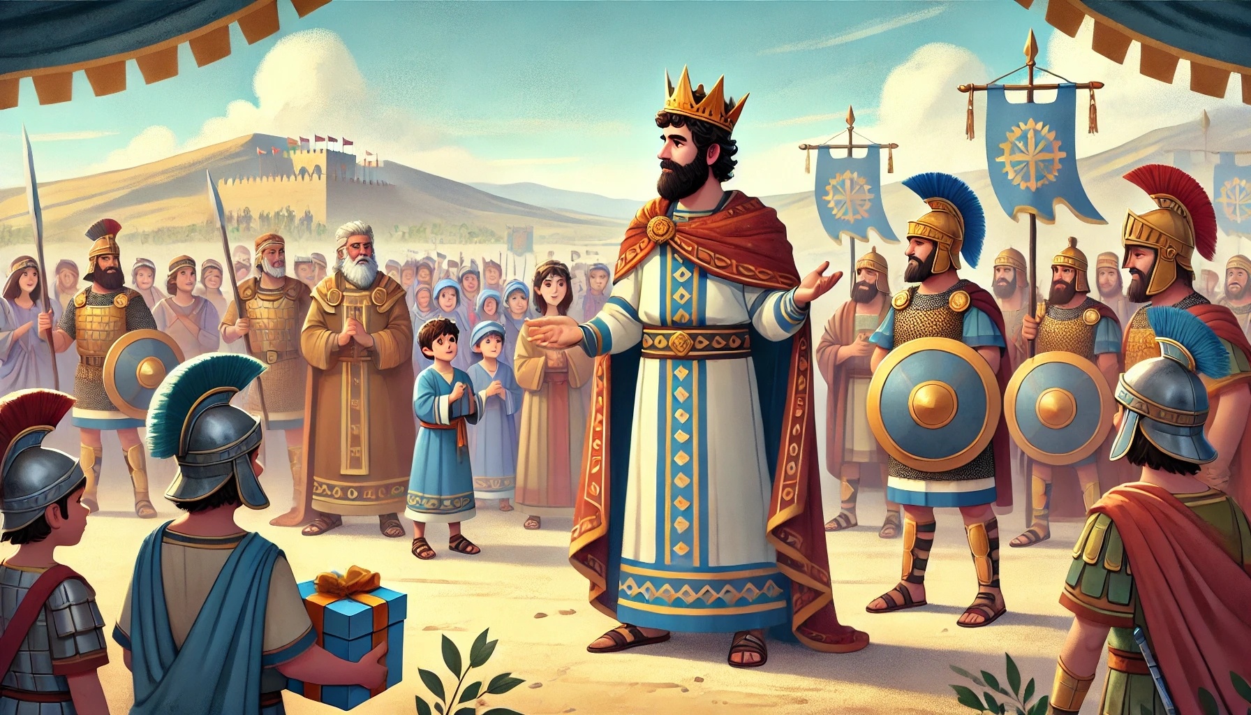 David möchte freundlich sein. Er will einem anderen König helfen und ihm Trost zeigen.