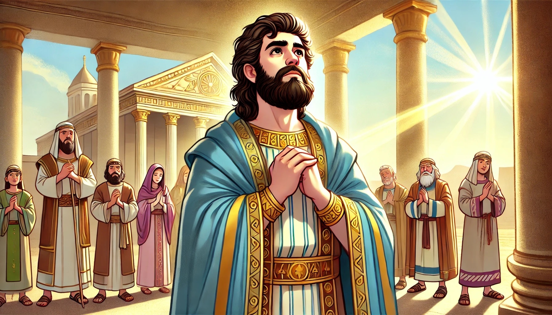 Doch jetzt passiert etwas, das genauso wichtig ist. Salomo tritt vor das Volk – und beginnt zu beten. Er spricht nicht leise für sich, sondern laut, sodass alle ihn hören können. Es ist ein besonderes Gebet, das zeigt, was ihm wirklich am Herzen liegt.