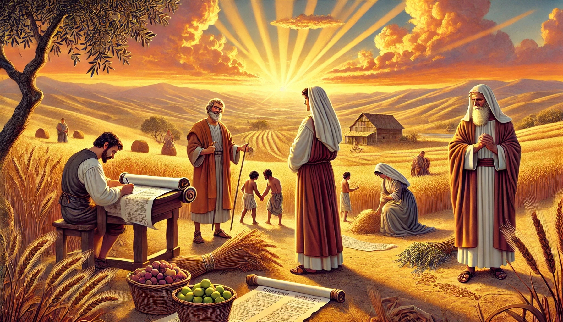 Auch bei der Ernte sollen die Armen mitversorgt werden โ Garben, Oliven, Weintrauben sollen zurรผckgelassen werden (V. 19โ21).