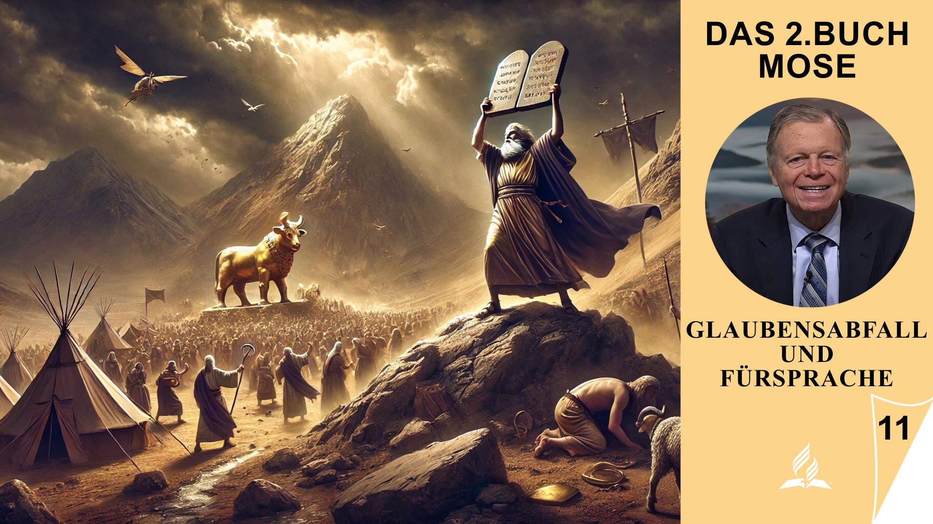 Lektion 11 zeigt den tragischen Glaubensabfall Israels, als sie während Moses Abwesenheit das goldene Kalb anbeteten. Ihre Ungeduld und ihr Misstrauen gegenüber Gott führten sie schnell in Götzendienst, moralischen Verfall und offene Rebellion. Aaron versagte als Führer, indem er dem Druck des Volkes nachgab, anstatt standhaft für Gottes Ehre einzutreten. Doch mitten in diesem Chaos trat Mose als treuer Fürsprecher auf, der für das sündige Volk betete und sogar bereit war, sein Leben für sie zu opfern. Diese Geschichte offenbart sowohl die Schwere der Sünde als auch die Größe göttlicher Barmherzigkeit. Sie erinnert uns daran, dass wahre geistliche Führung Demut, Mut und selbstlose Liebe erfordert – Eigenschaften, die in Mose ein deutliches Bild von Christus finden.