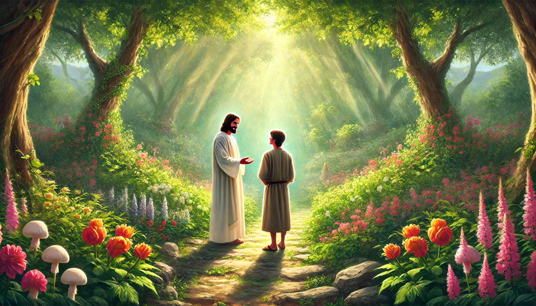 Ein Junge namens Daniel hatte einen Traum. In diesem Traum stand er vor einer riesigen Bibliothek – größer als alles, was er je gesehen hatte. Die Regale reichten bis zum Himmel, und jedes Buch schien aus Licht zu bestehen. Als er vorsichtig eines davon aufschlug, flutete sein Herz mit Wärme und Erkenntnis. Jedes Wort auf der Seite schien von Gottes Liebe durchdrungen zu sein.